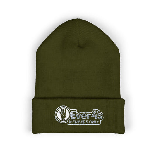4Ever4s "Members Only" Embroidered Cuffed Beanie — Olive Knit Winter Hat